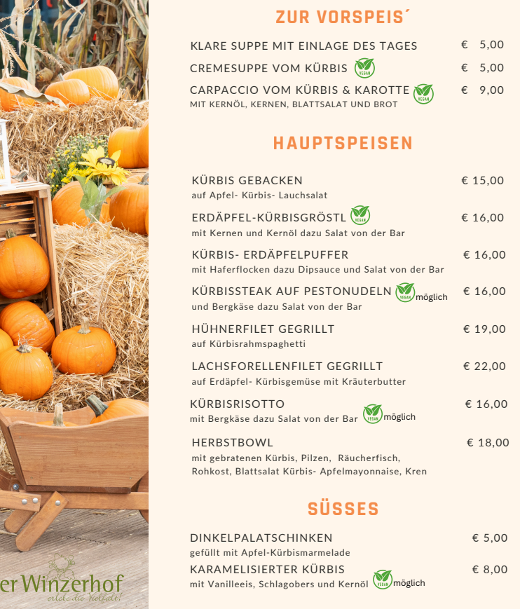 Im Winzerhof kommen ausschließlich naturreine, frische, kreative und mit viel Liebe zubereitete Speisen auf deinen Teller. Ein dankbarer und wertschätzender Umgang mit den Gaben der Natur ist uns wichtig. Deshalb werden all unsere geschmackvollen Köstlichkeiten mit frischen Lebensmitteln aus dem Eigenanbau sowie von ausgewählten Partnerfirmen zubereitet.